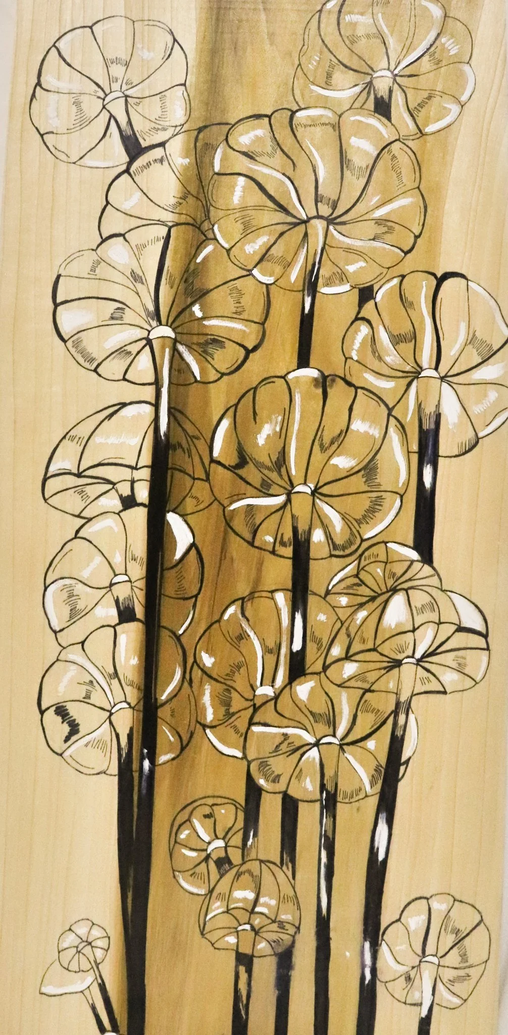 I prefer using poplar wood for my drawings because of its smooth texture, and occasionally, you might come across one with a subtle mint green hue. Whenever feasible, I opt for recycled wood sourced from friends or found objects. My inspiration stems from the work of Audrey Kawasaki, who also utilized wood as a canvas. I mostly use markers or oil paints to give life to my creations. Below, I've shared some of my favorite pieces thus far.